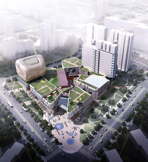 青岛崂山区综合商业中心,总体量二十万方,由高级公寓、酒店、商业广场组成。