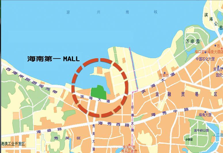 海南第一MALL 位于海口市秀英大道和滨海大道交界处,地处海口港区。海口港有史以来就是海南对外开放的交通枢纽和重要门户。目前日均进出港5000人次,高峰期2万多人次,有生产泊位15个,万吨级泊位2个,年通过能力近300万吨,可通达30多个国家和地区,全省每年70%以上的客货运输均在这里完成。